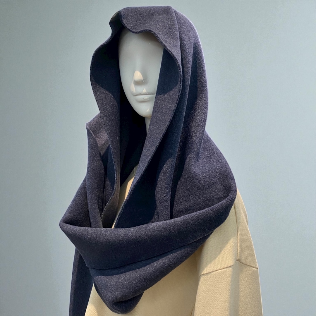 北欧らしい色合いのフリース素材のフード付きマフラーです。