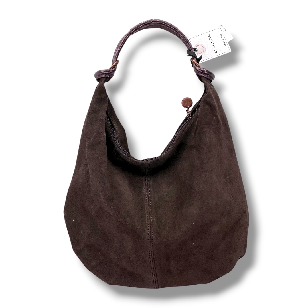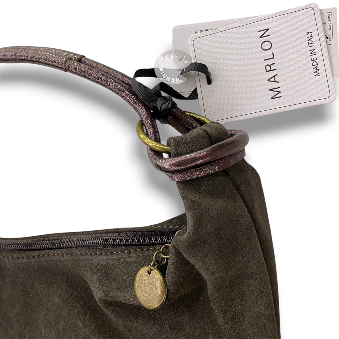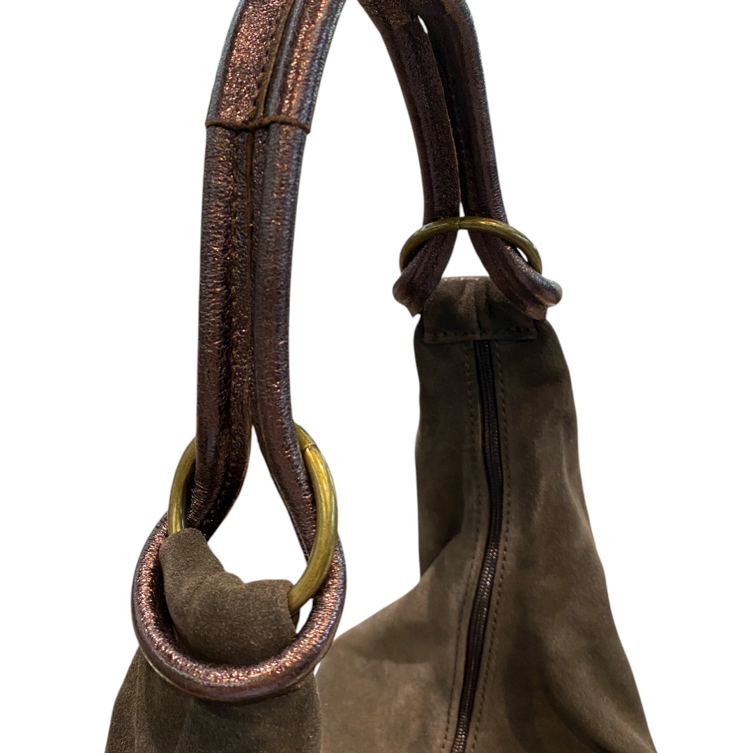 ワンショルダーのスウェードバッグです。 ハンドルはラミネートレザーになっています。