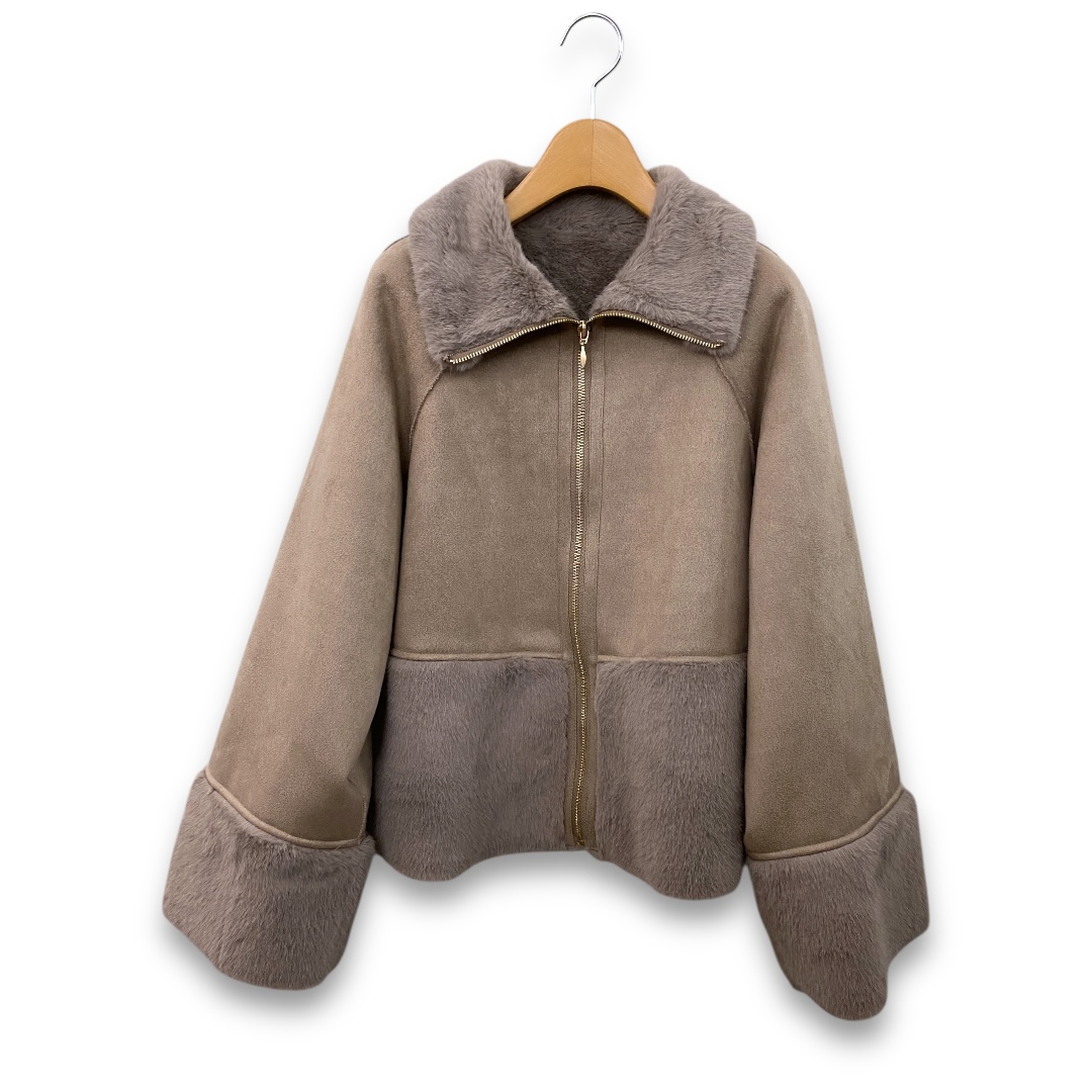 ぬくもりを纏う、エコムートン仕立てのショートブルゾン。ボリュームファーで魅せる大人の冬スタイル。