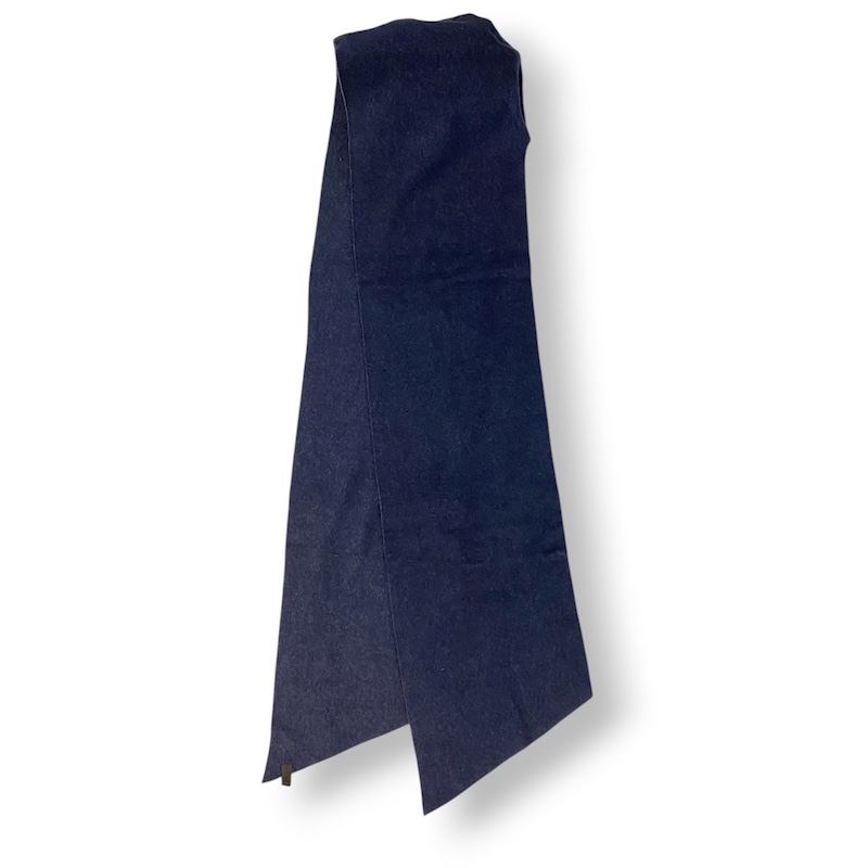 こちらは、マフラーとしての首元の暖かさに加え、頭部を覆うフードの機能を融合させた、ユニークでモダンなデザインが特徴です。素材には、ブランドの代名詞である、極めて柔らかく軽量なフリース素材を採用。深いネイビーカラー(タグ表記はDB. EVE、ダークエバーグリーン系や濃いブルー系など、ニュアンスのあるカラーです)が、カジュアルすぎず、上品で洗練された印象を与えます。